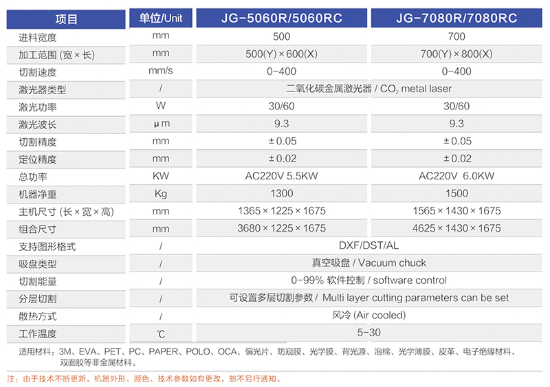 适用材料范围: 3M/PET/PC/PAPER/OCA/防窥膜/防爆膜/背光源/扩散/泡棉/光学薄膜/电子绝缘材料/皮革/双面胶/特殊材料石墨烯等